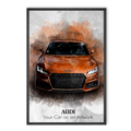 While we take care of the watercolor portrait of your car, you can, with the live editor, choose from a variety of backgrounds and customize the poster or canvas to your liking. The final touch is the inscription of your choice. This way, your car poster becomes a unique piece and an original gift for car fans.