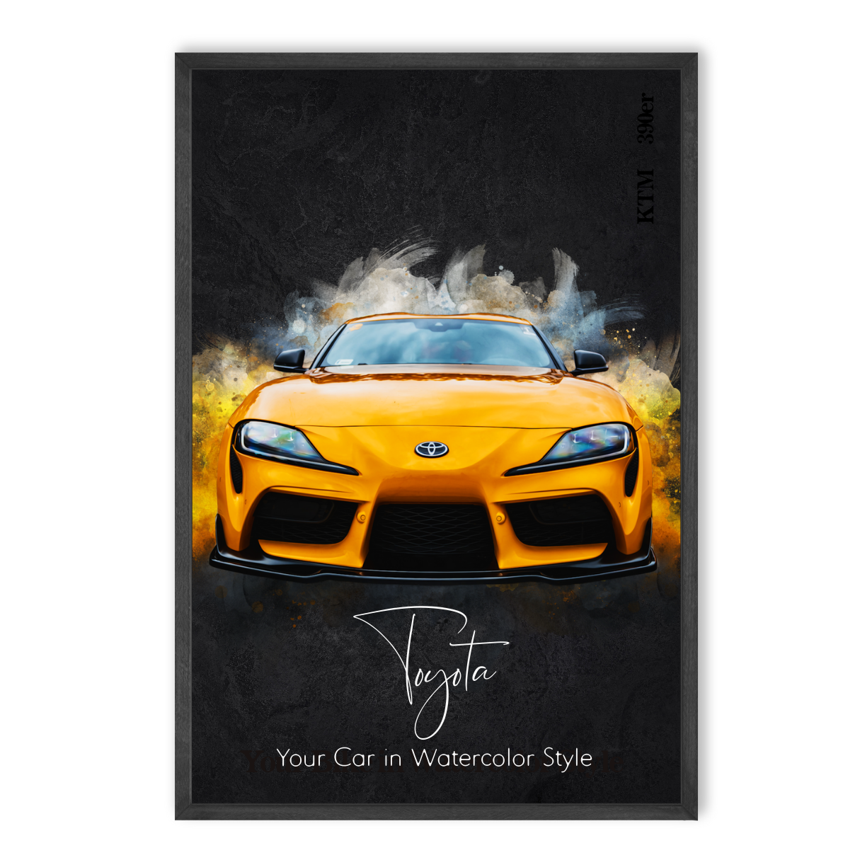 A personalized watercolor-style poster is much more than just a gift. It becomes a lasting memory of the passion for cars and the joy of driving. Every time you look at the watercolor portrait, all the special moments and memories you associate with your beloved car will come back to mind. The car poster thus becomes a focal point in any room, garage, or workshop, sparking conversations among enthusiasts.