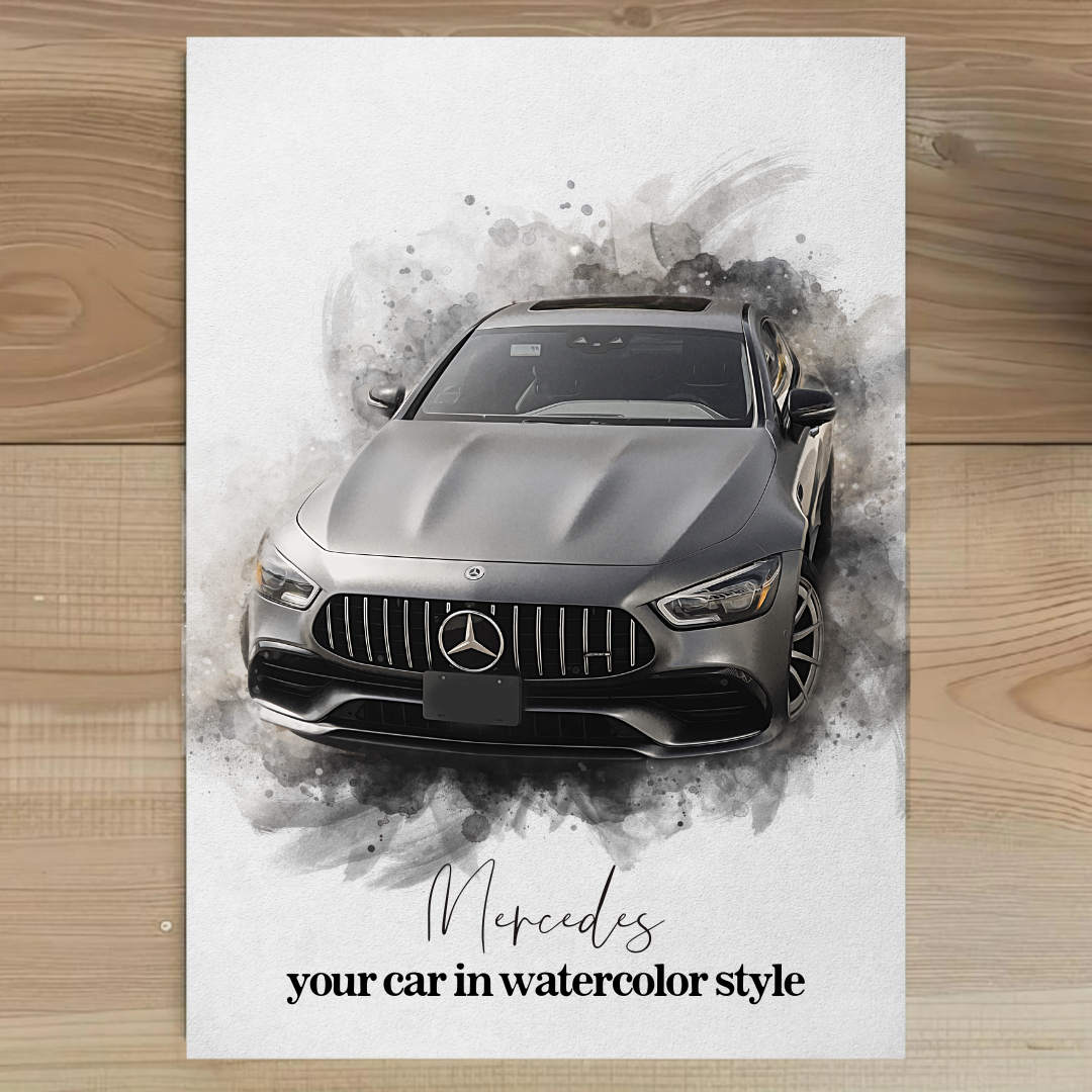 Looking to give a special gift that will impress a car lover? Then we have just what you need! We transform a photo of your car into a stunning watercolor artwork.