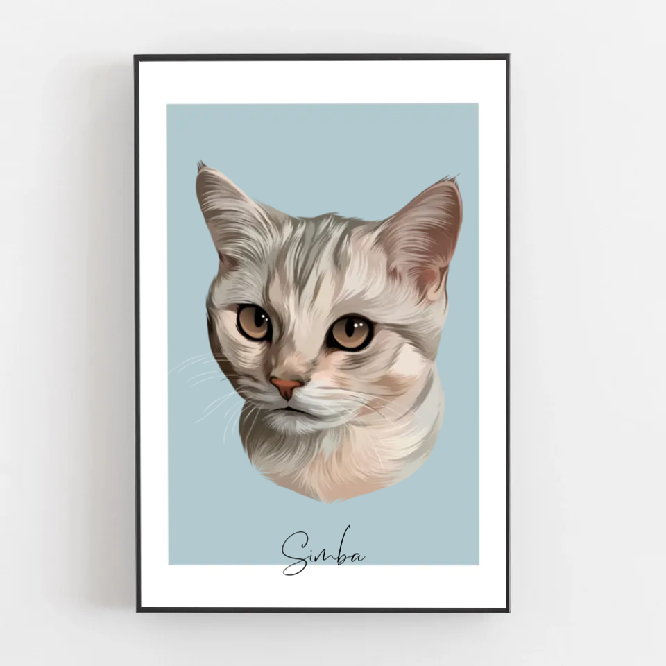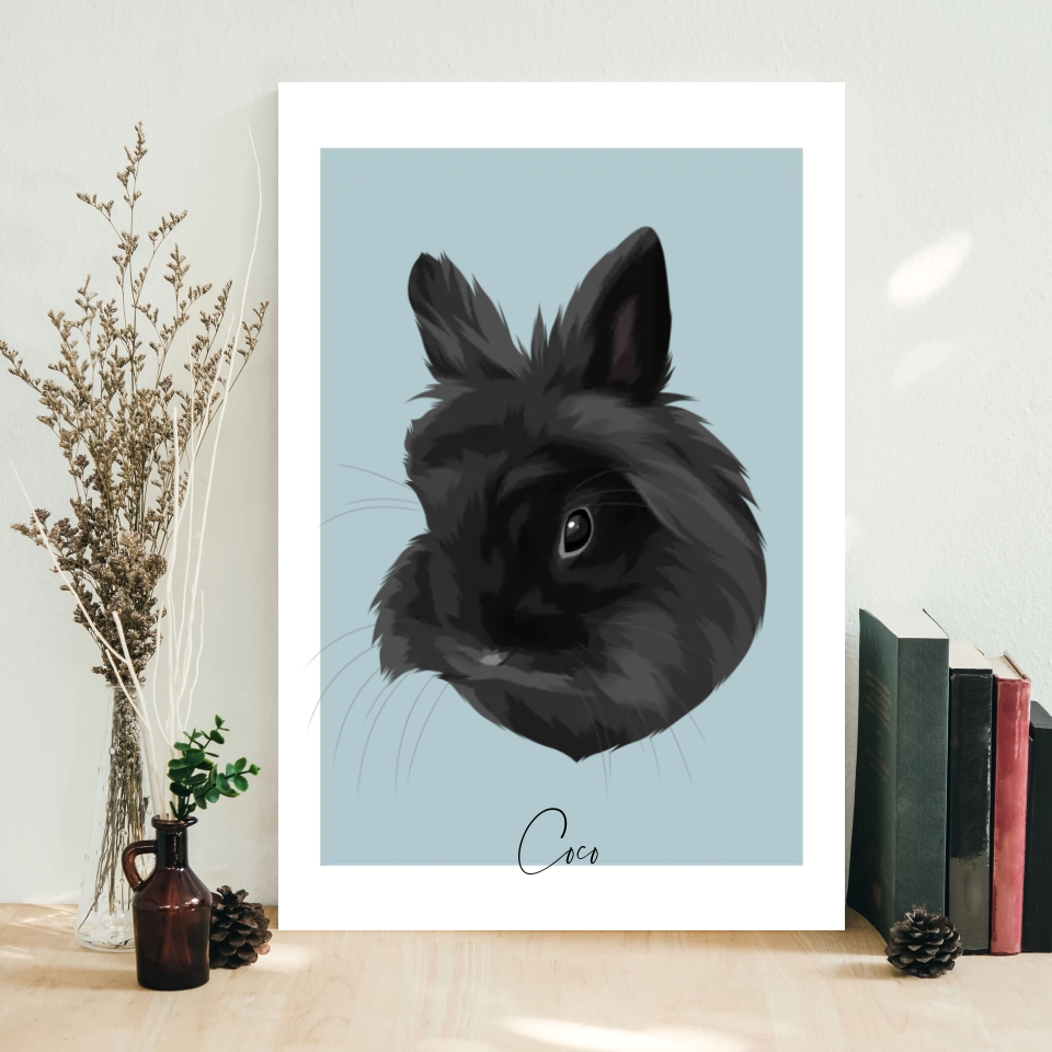 Looking for an original gift for a pet owner? We have just what you need! Our customized animal portraits, hand-illustrated digitally on poster or canvas, offer an artistic and personal way to capture the love for an animal. With our online editor, you can customize each artwork to your liking, creating a precious keepsake that will accompany you for a lifetime.